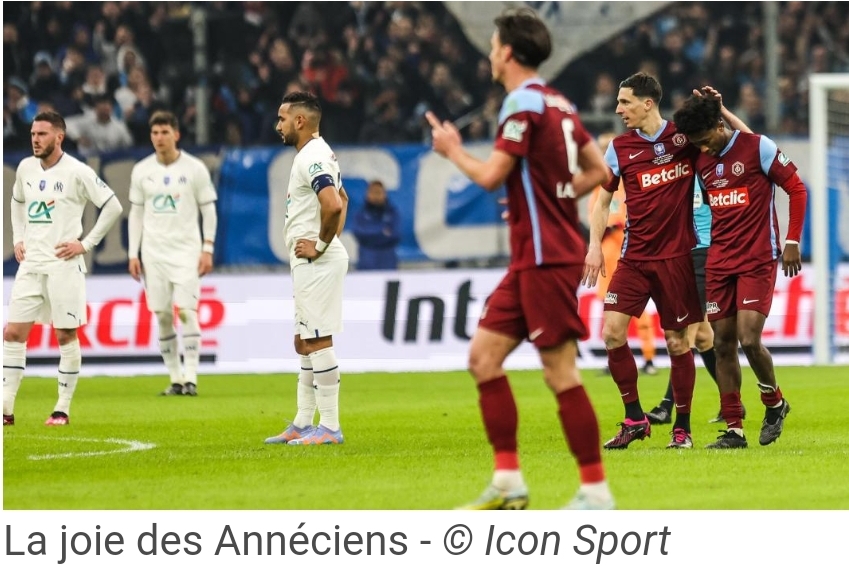 Après avoir réalisé une belle prestation au tour précédent contre le PSG, l’OM a été éliminé hier en 1/4, contre une valeureuse équipe d’Annecy. Les Olympiens avaient réussi à revenir inextremis avec une égalisation à la 95eme. Mais les tirs aux buts, après prolongation, ont eu raison des espoirs du Vélodrome. Tout le monde voyait Marseille remporter un trophée cette année… et c’est râpé. L’OM semble émoussé et dans le dur en ce moment. Maintenant, place au championnat pour aller chercher une place en LDC pour l’année prochaine.