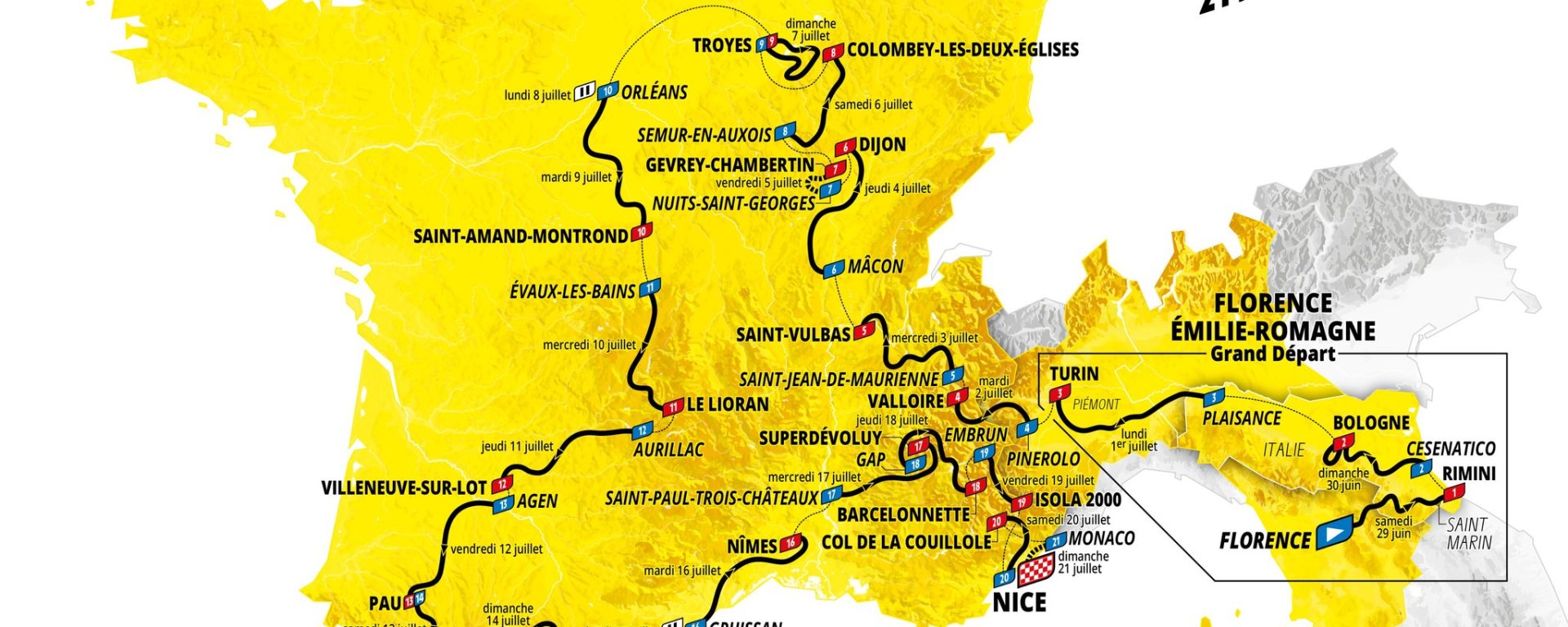 Christian Prudhomme a dévoilé le parcours du Tour de France 2024. Et pas mal de surprises et nouveautés au programme. Pas d’arrivée sur les Champs l’été prochain et départ depuis l’Italie. Un parcours qui se veut très montagneux avec un passage en Auvergne qui devrait être déterminant. Dès Florence, il y aura du dénivelé avant un premier passage dans les Alpes. Peu d’étapes pour les rouleurs et sprinteurs et une arrivée à Nice, sur La Promenade des Anglais, après un deuxième passage alpin. Cela s’annonce pour les costauds et les grimpeurs bien préparés. Une nouvelle et belle bagarre entre le danois Vingegaard et le slovène Pogacar. A moins qu’un Roglic, après avoir changé de team cet hiver vienne concurrencer ce duo ?